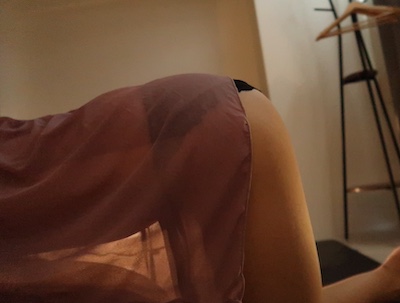 美しいシルエットをチラ見しながら
