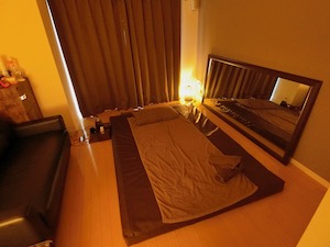 ゆったりとしたソファがあり、マットの横には大きめなミラーが安置されていた。