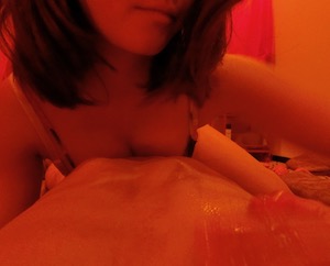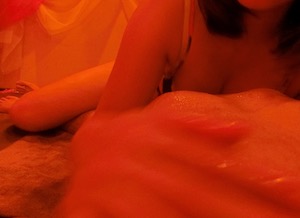 オイルを投入して、デコルテ、胸をグリリ