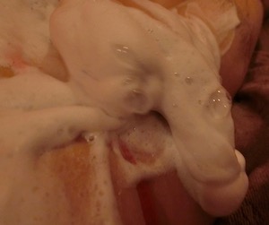 胸からお腹のほうへヌルリ〜ン