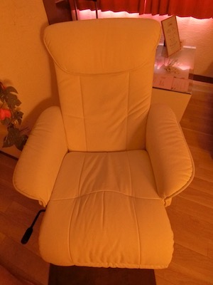 今回のコースではマットでの施術。右端に見える白いリクライニングチェアが後ほど大活躍することになる