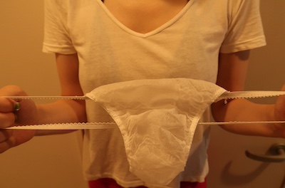 即ち、Tヒモをウデにひっかけて伸ばすように